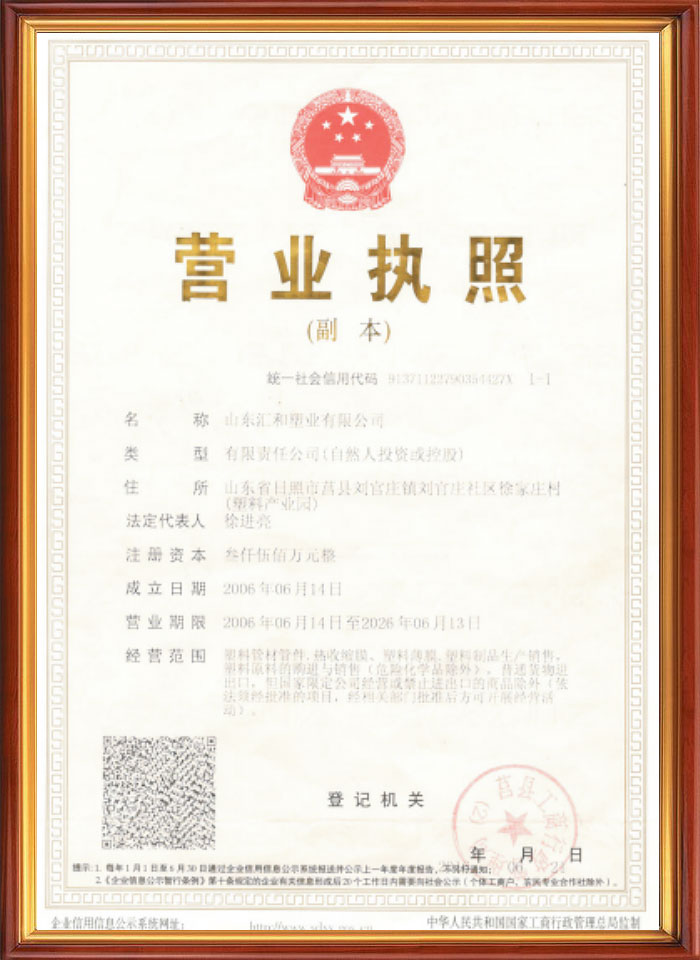 山東匯和塑業(yè)有限公司 地址:山東省日照市莒縣劉官莊鎮(zhèn)塑料產(chǎn)業(yè)園匯達(dá)路3號(hào)